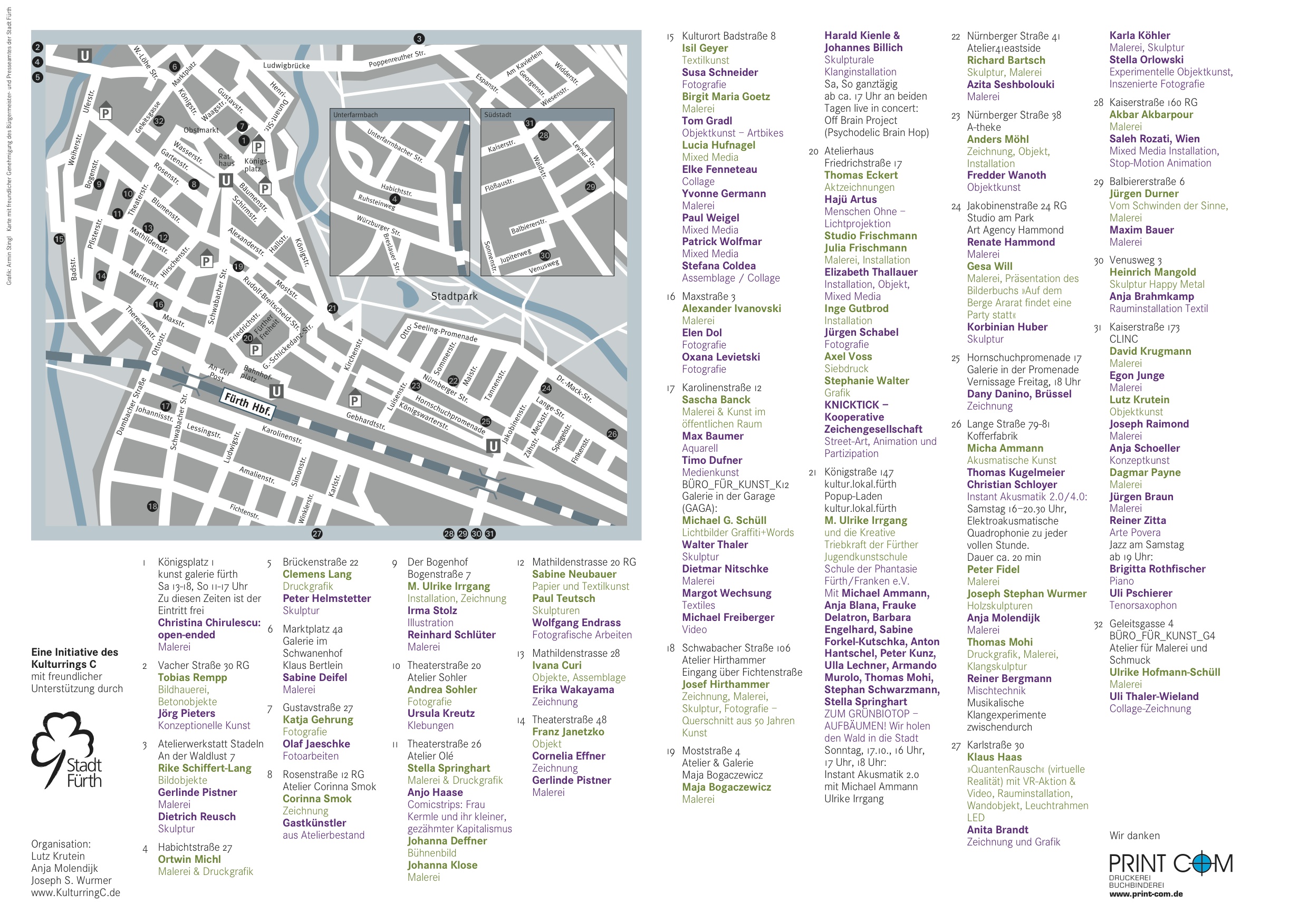 Sie möchten den öffentlichen Raum in Fürth attraktiver, spannender und bunter machen und haben dazu ein Konzept entwickelt, das Bildende Kunst, Street Art, Performance, Literatur, Musik und vielleicht auch GARDENING zusammenbringt.